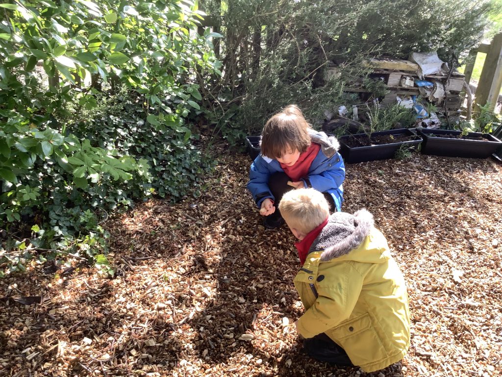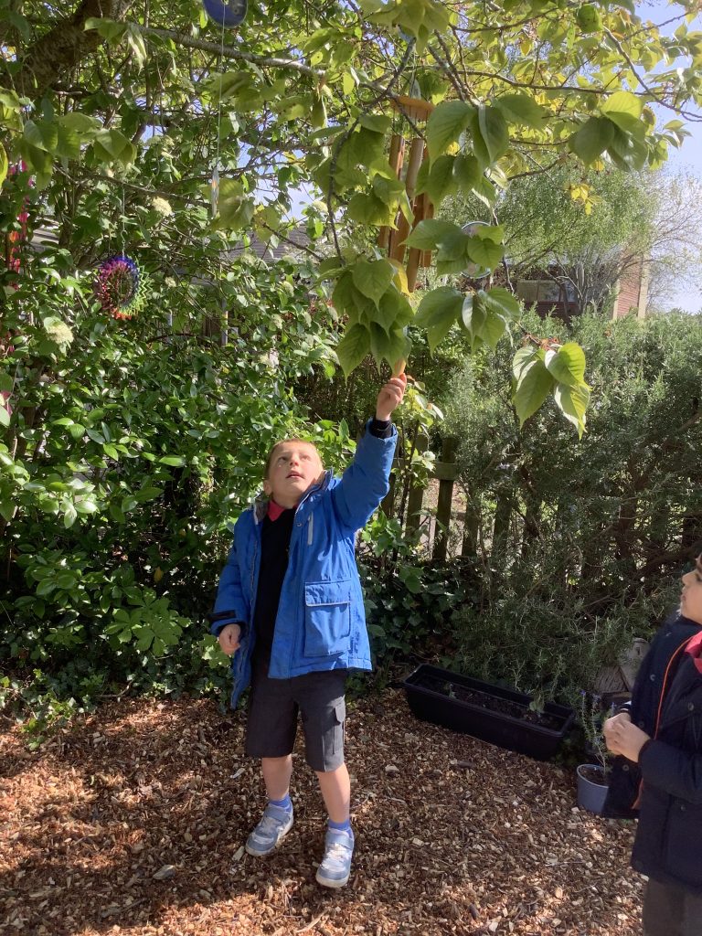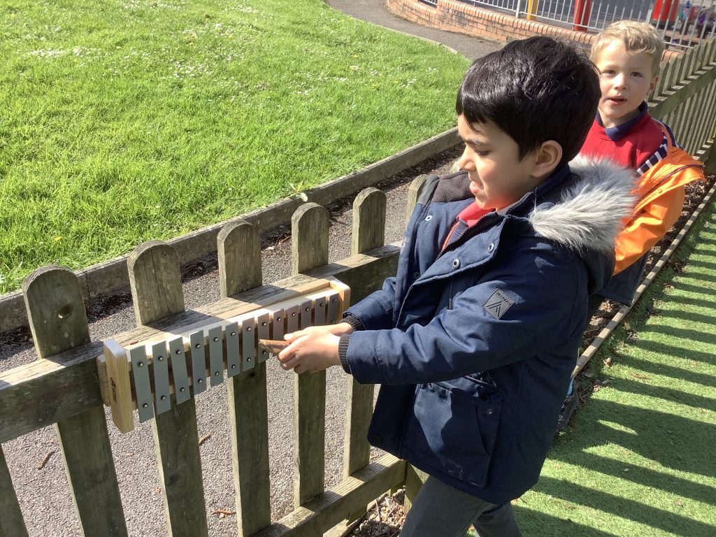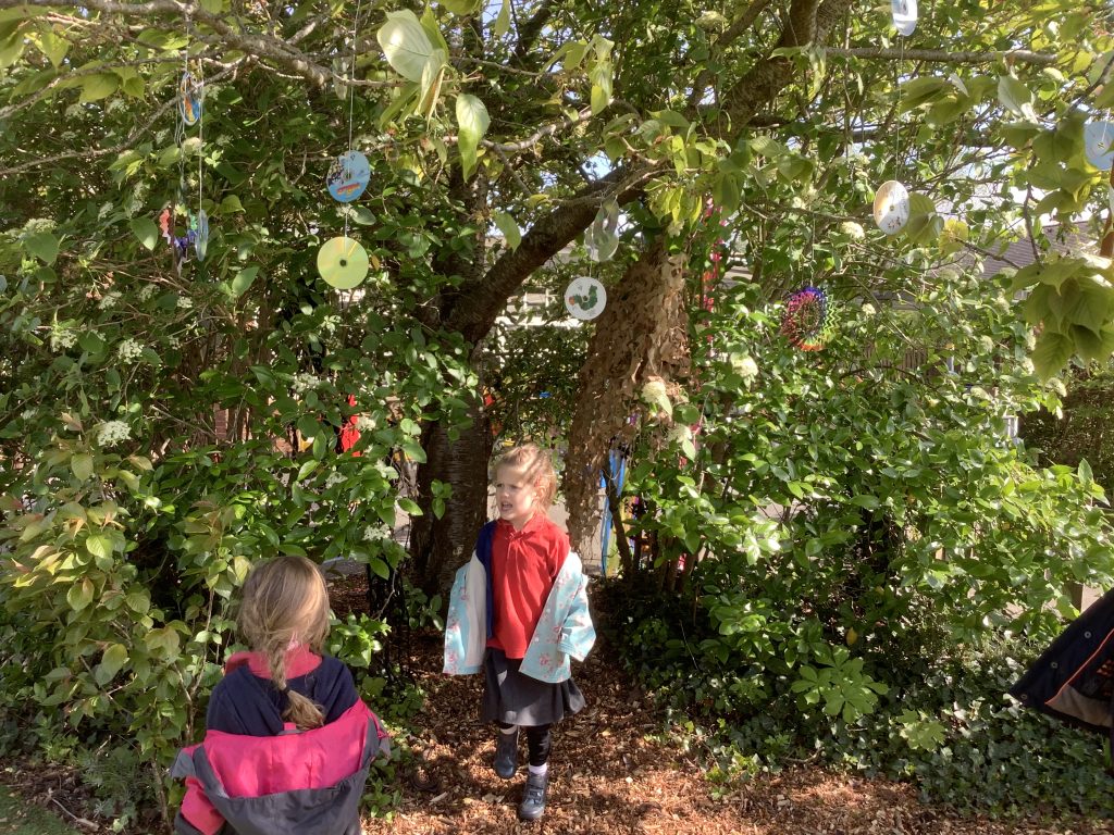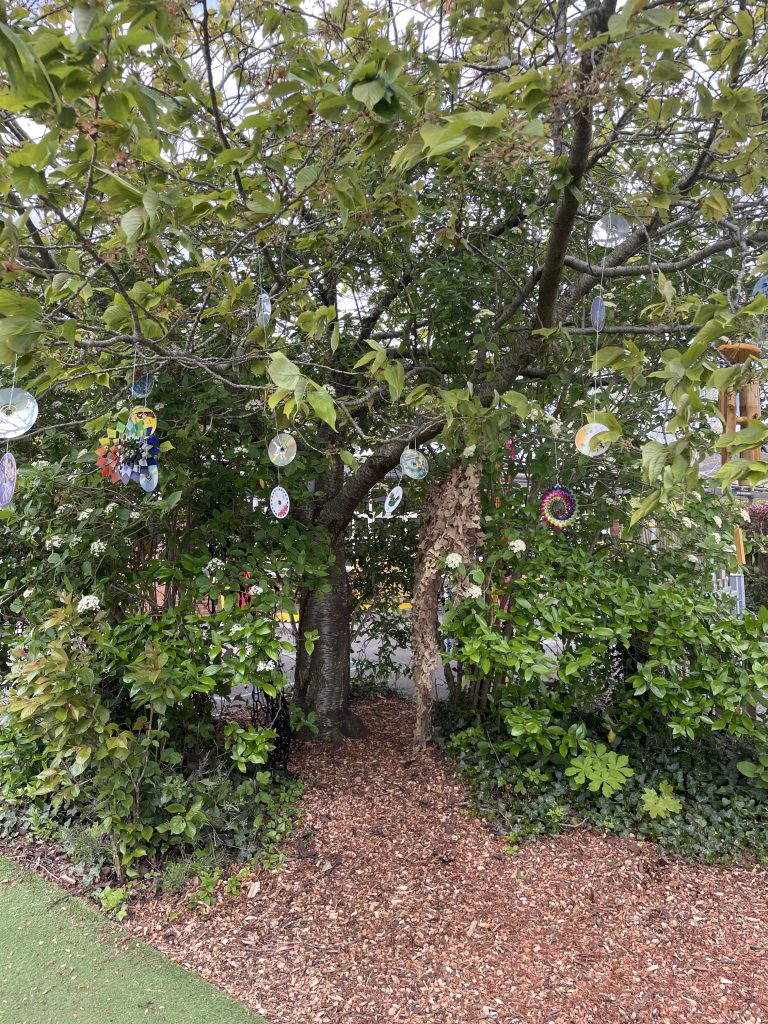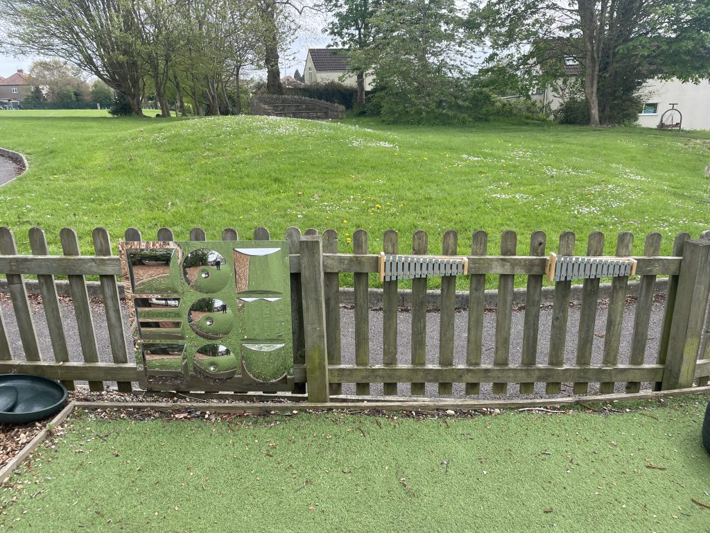 You might have noticed our new sensory garden on the patio area for the children to play with. There are wind spinners, CDs and a wind chime in the tree, glockenspiels on the fence, a mirror and smelly herbs for the children to explore their senses.