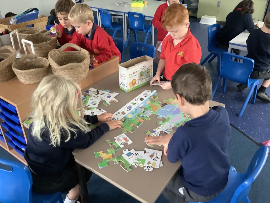 It was wonderful to see the change of dynamics in the Reception classes when all the children met each other on Monday morning. Each class has enjoyed staying for lunch for one day this week and playing in the Reception playground at lunchtime. The children have been very busy making new friends and building relationships, as well as starting their phonics lessons. The children have now been taught the phonemes s, a, t and p. They have also been taking part in doing lots of counting.
