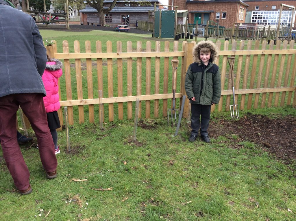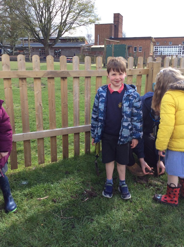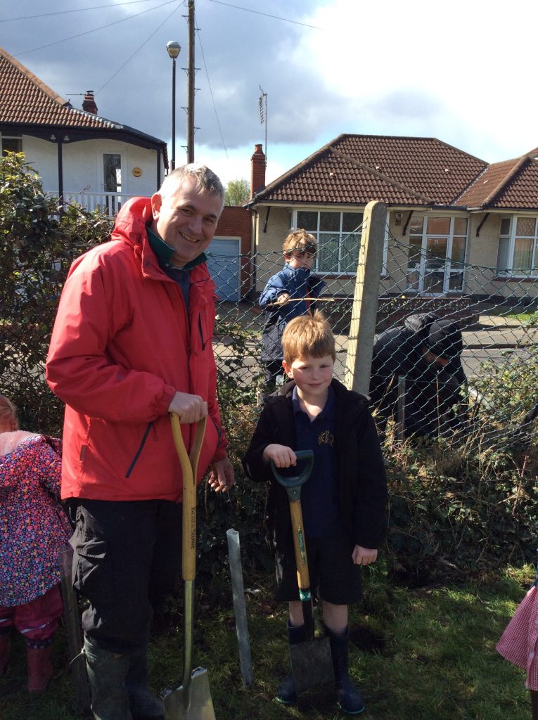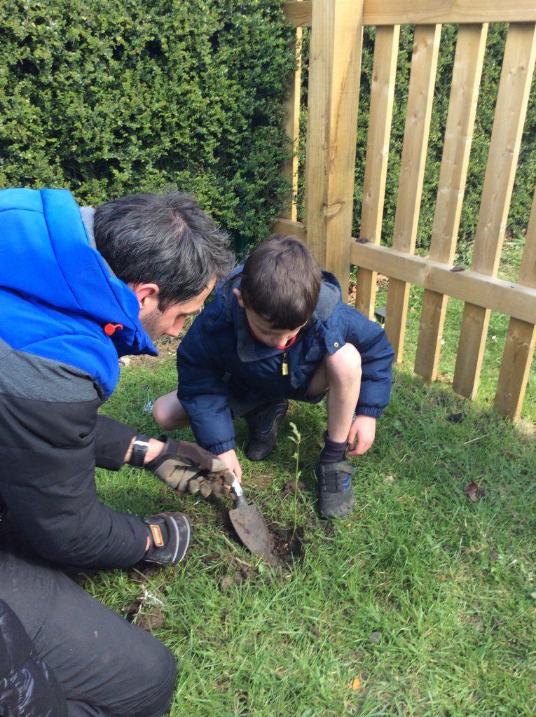 We have had a fantastic afternoon helping the Forest School team to plant 60 little saplings, which will make a woodland area around the Forest School section of the playground. As well as on the embankment outside the Year 1 and Year 2 classrooms. Thank you very much to all the parent volunteers who helped us! Please see below for photos.