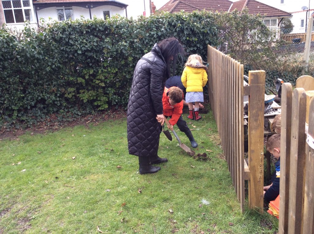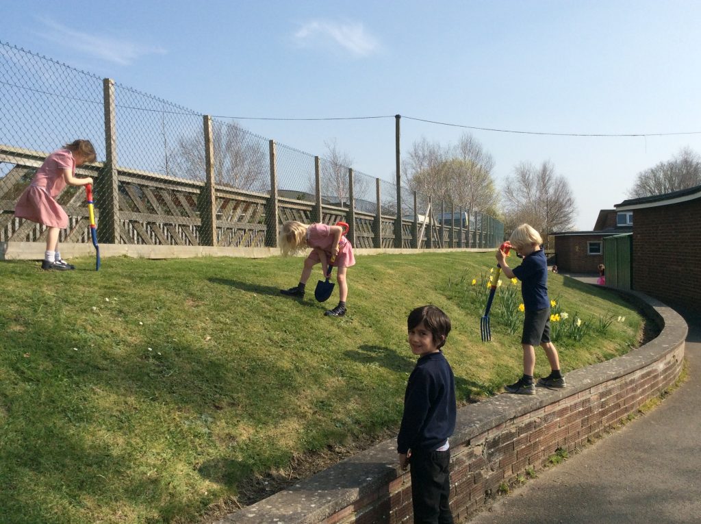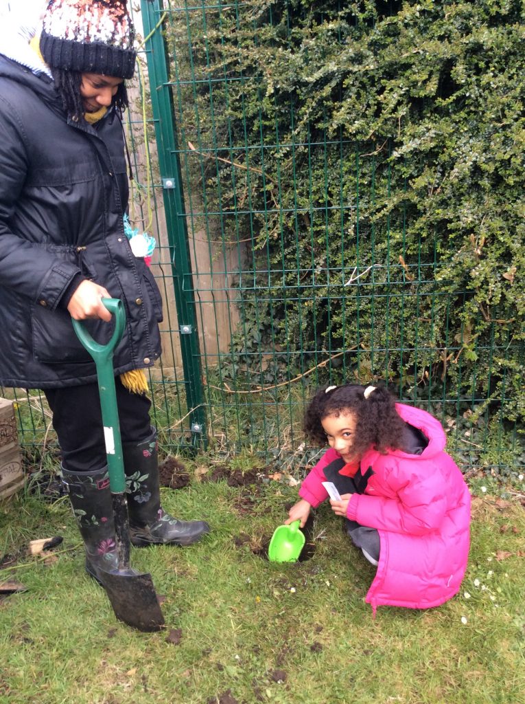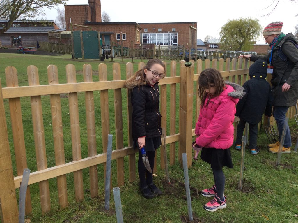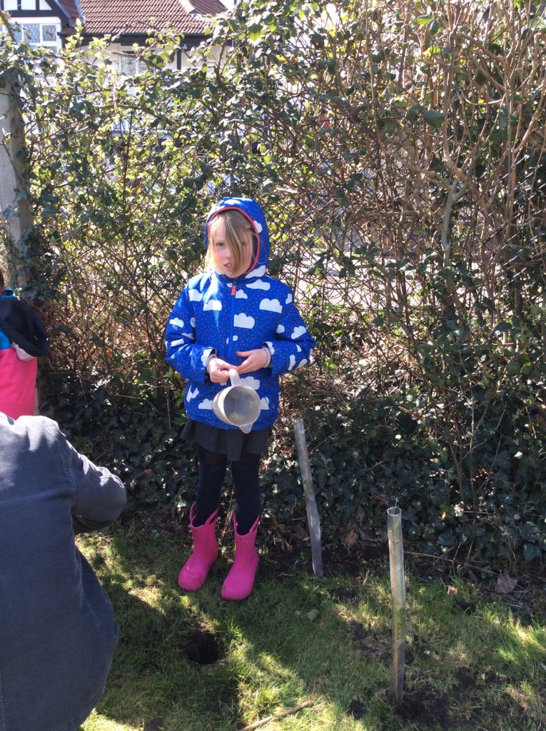 We have had a fantastic afternoon helping the Forest School team to plant 60 little saplings, which will make a woodland area around the Forest School section of the playground. As well as on the embankment outside the Year 1 and Year 2 classrooms. Thank you very much to all the parent volunteers who helped us! Please see below for photos.