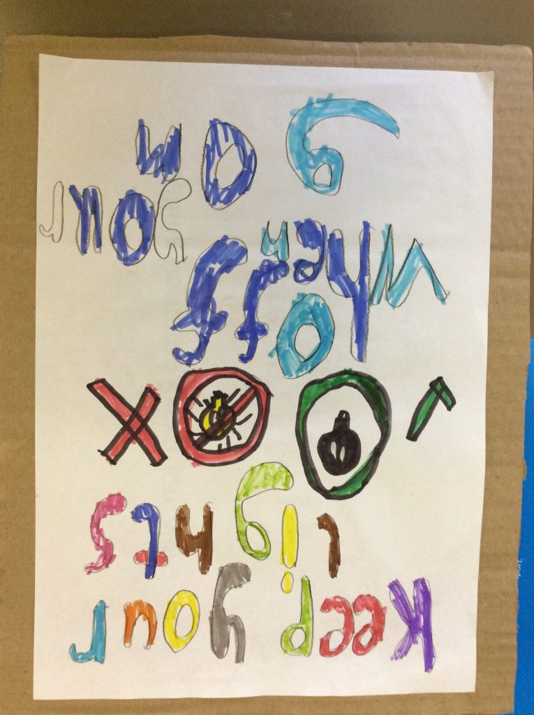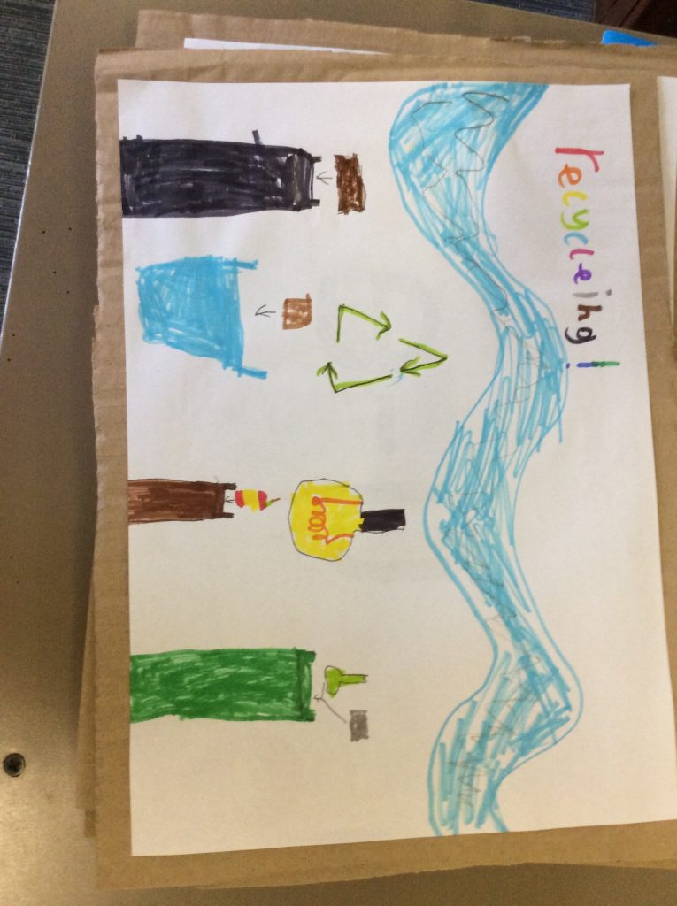 They have been busy, with the help of Class 9, making posters to go around the school reminding staff and children how their behaviours can have a positive impact on the environment. They used recycled paper and mounted their posters on cardboard.