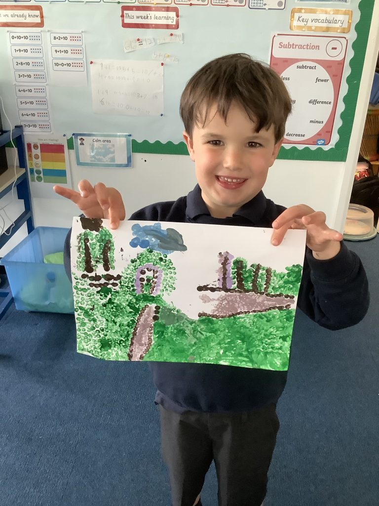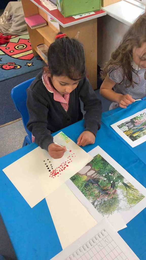 We have been learning about pointillism in Art. The children have used photos of their garden or a familiar outdoor space to create their pointillism artwork.