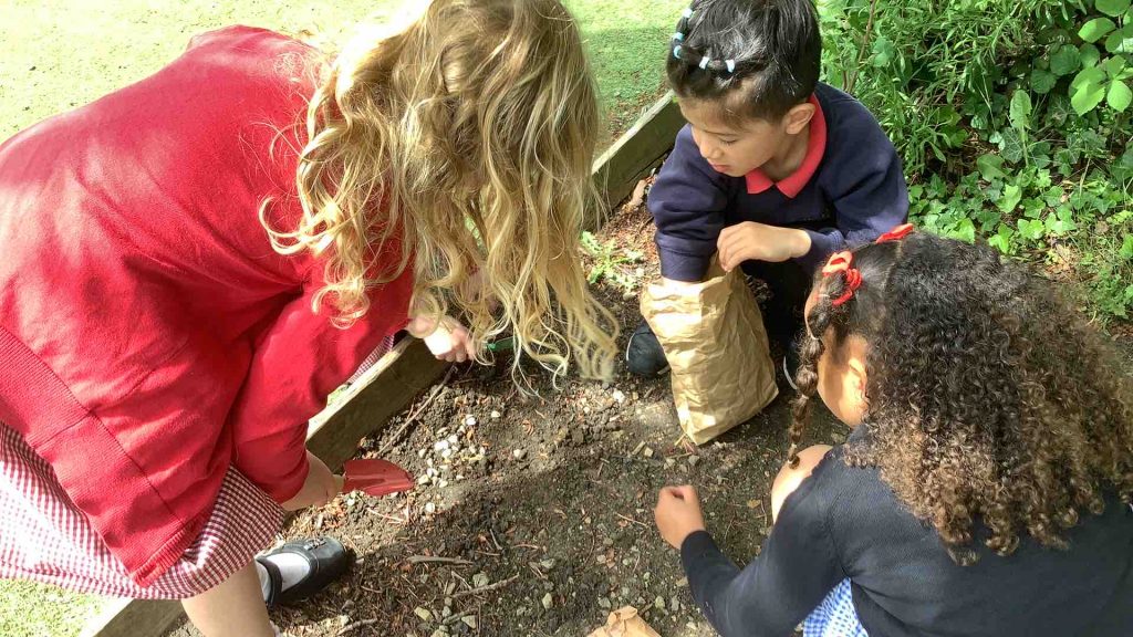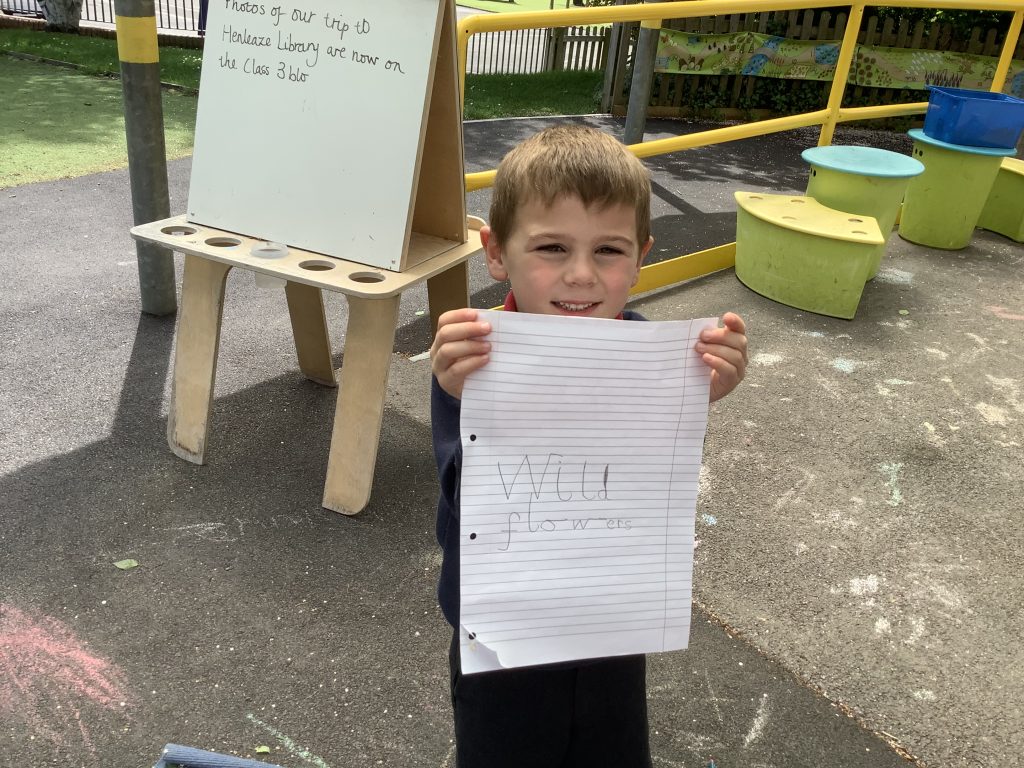 The children scattered wild flower seeds in the outside area and made signs to tell people not to walk on them.